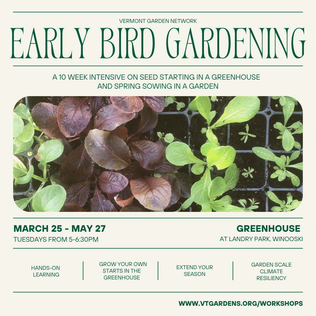 A new partnership between Vermont Garden Network and City of Winooski is bringing to fruition the much-anticipated inauguration of a greenhouse in March 2025! Through this 10-week long intensive we will welcome an inaugural cohort of gardeners sharing access to the heated greenhouse and participating in the first of a series of workshops focused on climate resiliency for garden-scale growers.